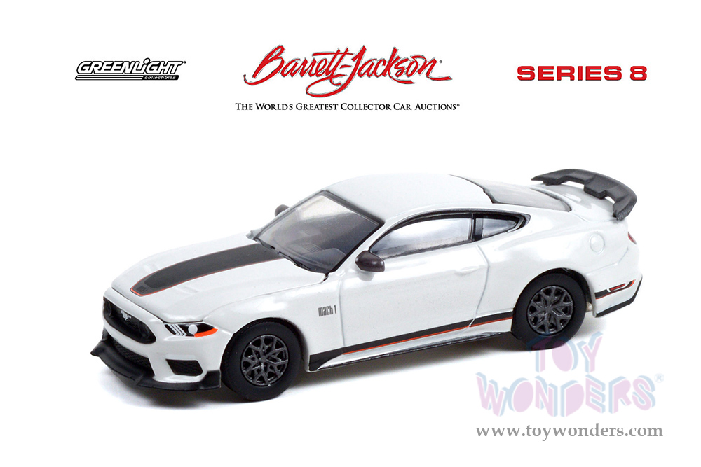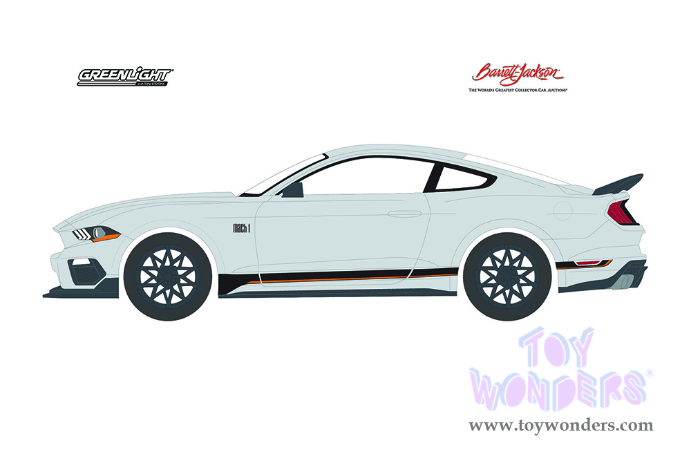 Greenlight - Barrett Jackson Series 8 | Ford Mustang Mach 1 VIN #001 (Lot #3005) (2021, 1/64 scale diecast model car, Fighter Jet Gray/Ebony and Orange Stripes) 37240F/48