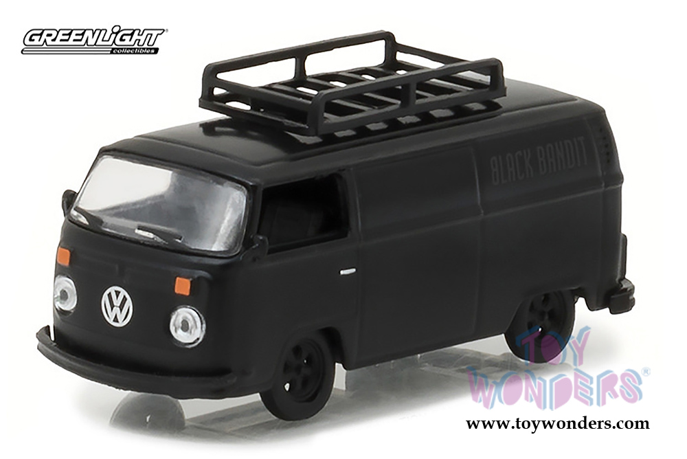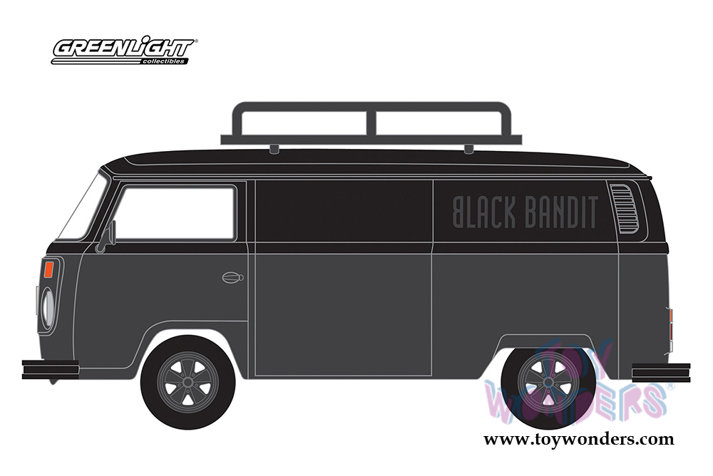 27930B/48 Greenlight Black Bandit Series 18 | 1974 Volkswagen Type 2 Panel Van. 1:64 scale diecast collectible model car. 2.25" long diecast car. Each car individually blister carded. 6 pcs/inner. Card size: 7.75" x 5.75". These cars are manufactured by Greenlight.