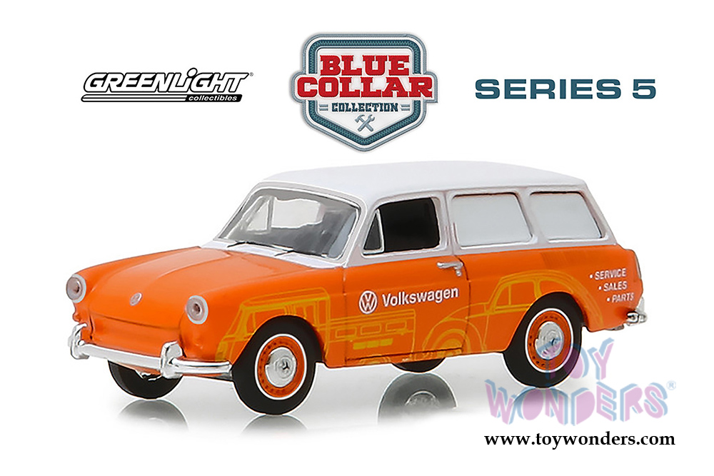 Greenlight - Blue Collar Collection Series 5 | Volkswagen Type 3 Panel Van -  Volkswagen Sales and Service (1966, 1/64 scale diecast model car, Orange/White) 35120C/48