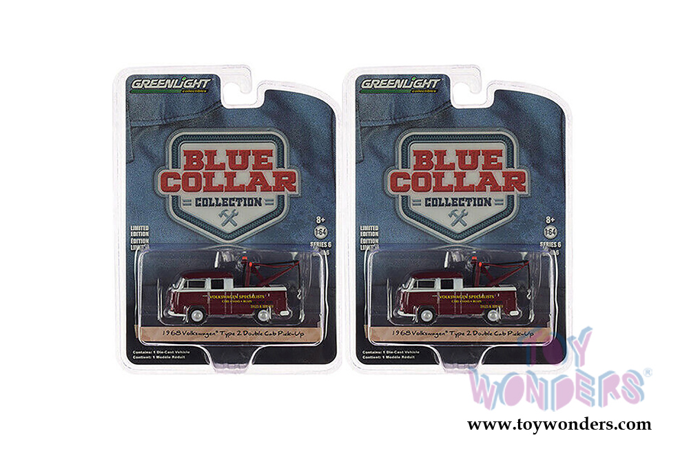 Greenlight - Blue Collar Collection Series 6 | Volkswagen Type 2 Double Cap Tow Truck Doka with Drop in Tow Hook (1968, 1/64 scale diecast model car, Metallic Burgundy) 35140A/48