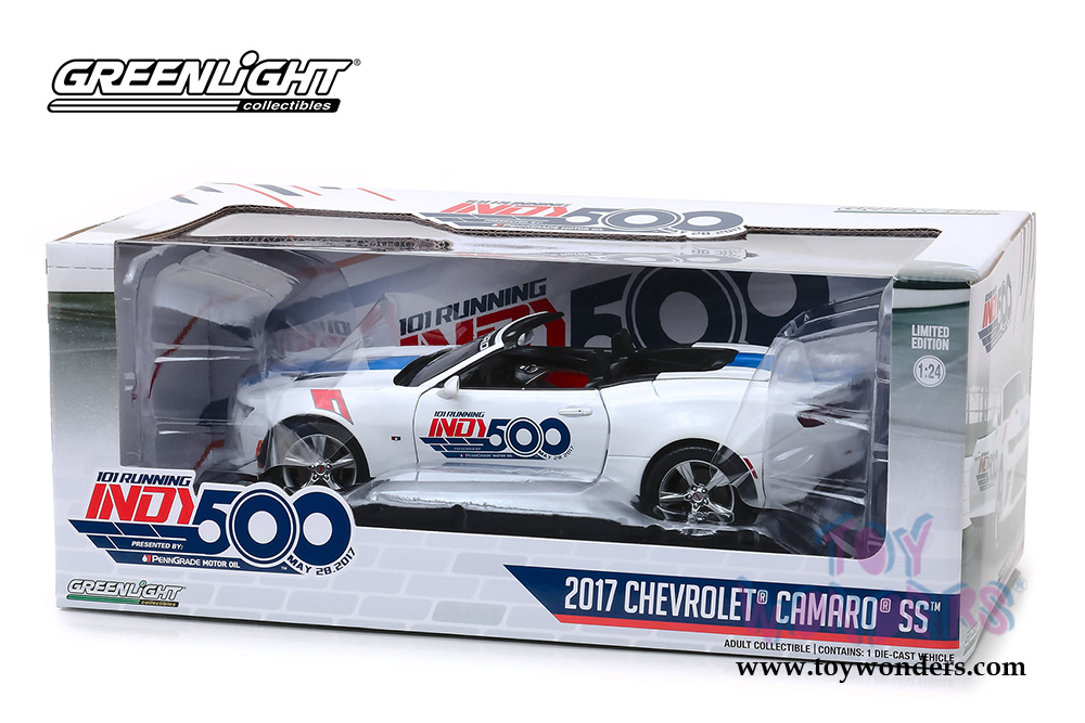 Greenlight - Chevrolet® Camaro® SS™ Convertible 101 Running Indy 500 Presented by PennGrade Motor Oil 500 Festival Event Car (2017, 1/24 scale diecast model car, White) 18247