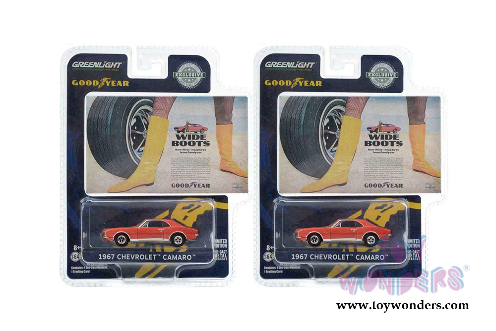 Greenlight - Chevrolet Camaro "Wide Boots" "New Wide Tread Tires from Goodyear" Goodyear Vintage Ad Car (1968, 1/64 scale diecast model car, Orange) 30195/48