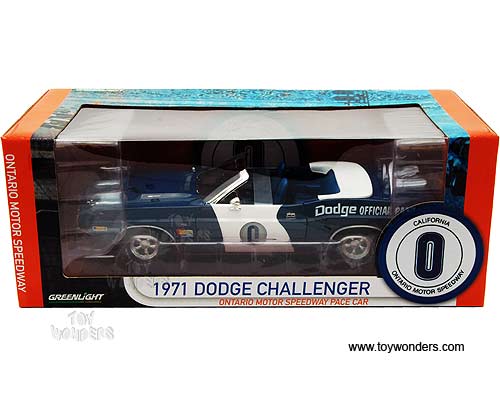 Greenlight - Dodge Challenger Convertible California Ontario Motor Speedway Pace Car (1971, 1/18 scale diecast model car, Blue) 12871