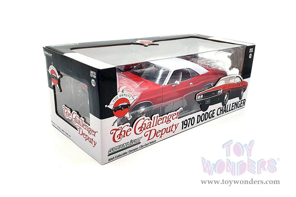 Greenlight - Dodge Challenger - The Challenger Deputy (1970, 1/18 scale diecast model car, Bright Red with White Roof) 13618
