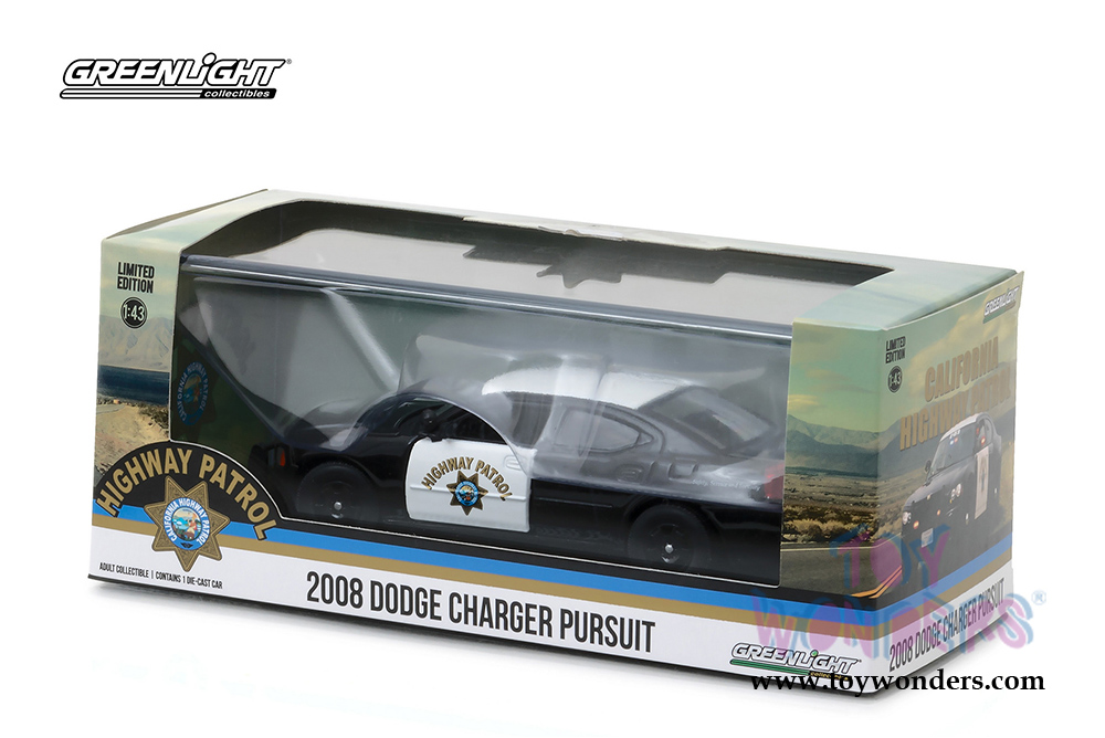 Greenlight - Dodge Charger Police Interceptor Car California Highway Patrol (2008, 1/43 scale diecast model car, Black w/White) 86087