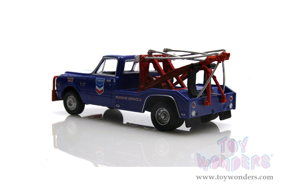 46100A/48 Greenlight - Dually Drivers Series 10 | 1969 Chevrolet® C-30 Dually Wrecker Truck - Standard Oil Company Roadside Service 24 Hour, 6 pcs set. 1:64 scale diecast collectible models. These cars are approximately 3.25" long diecast metal car. Each car Individually blister carded. Card size: 7.75" x 6.25". 6 pcs/inner. Manufactured by Greenlight. 46100A/48 is in Dark Blue.