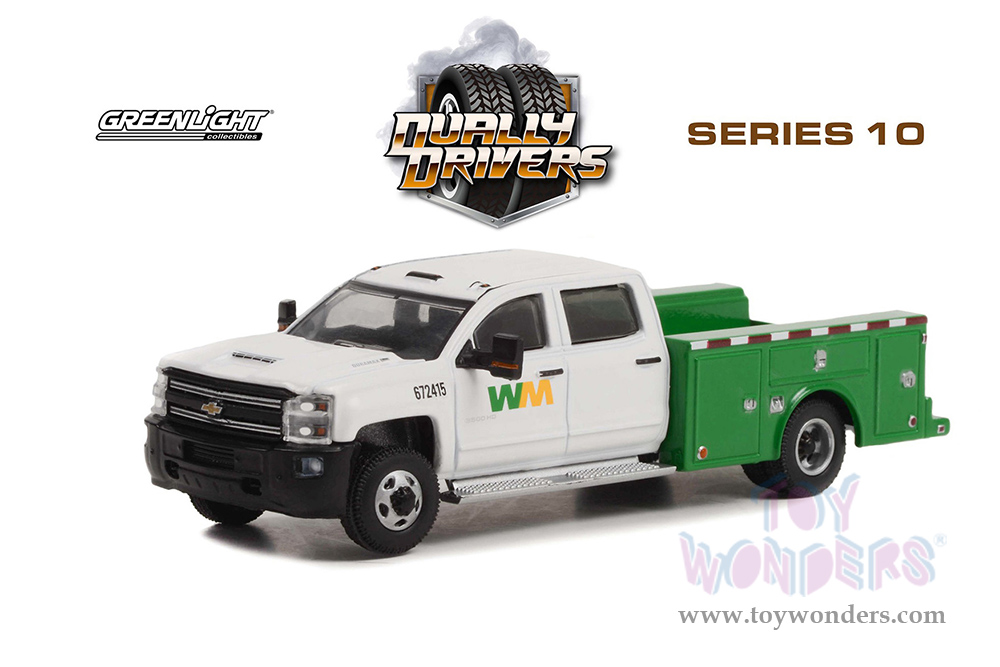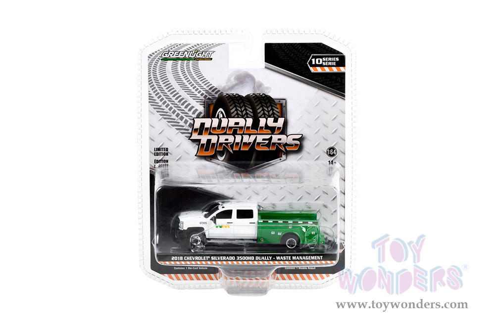 Greenlight - Dually Drivers Series 10 | Chevrolet® Silverado 3500HD Dually Service Truck - Waste Management (2018, 1/64 scale diecast model car, White and Green) 46100C/48
