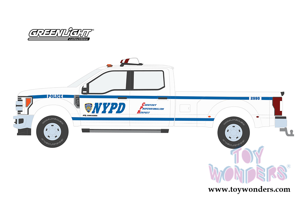 Greenlight - Dually Drivers Series 2 | Ford F-350 Lariat Pickup Truck New York City Police Dept NYPD (2019, 1/64 scale diecast model car, White) 46020F/48