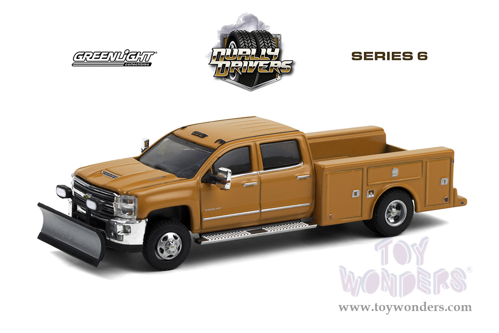 Greenlight - Dually Drivers Series 6 | Chevrolet® Silverado 3500 Dually Service Bed with Snow Plow Pickup Truck (2018, 1/64 scale diecast model car, Tangier Orange) 46060B/48