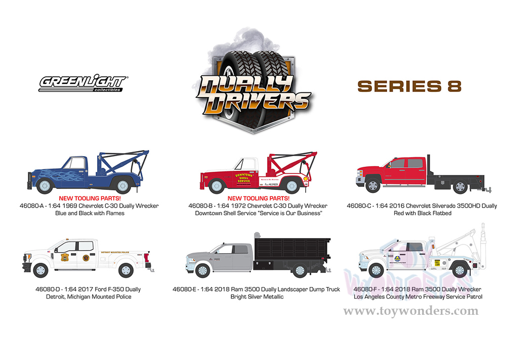 Greenlight - Dually Drivers Series 8 (1/64 scale diecast model car, Asstd.) 46080/48