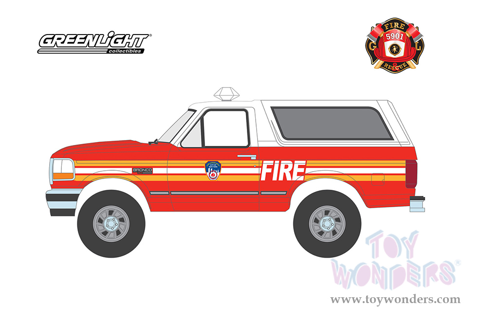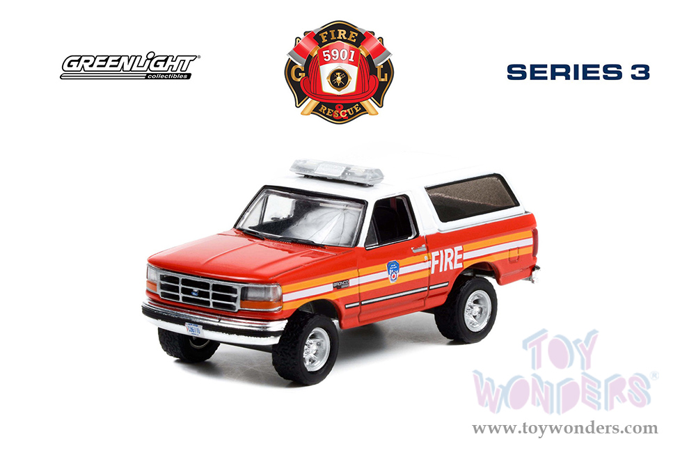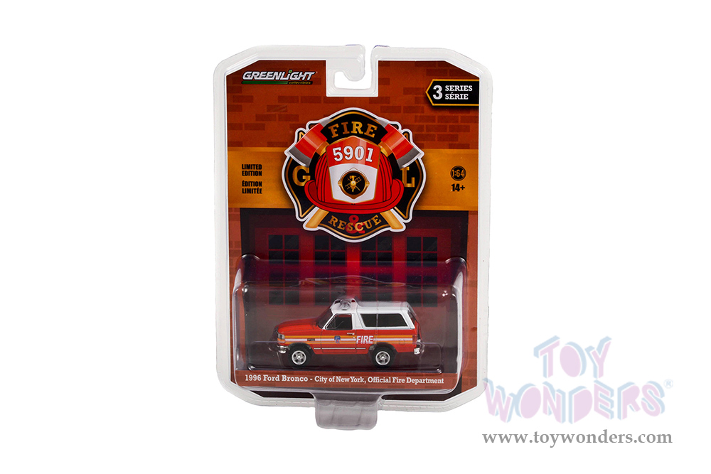 Greenlight - Fire & Rescue Series 3 | Ford Bronco "City of New York Official Fire Department" (New York) (1996, 1/64 scale diecast model car, Red and White with Stripes) 67030E/48