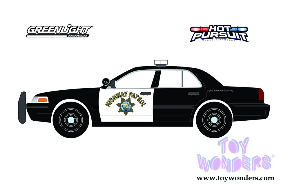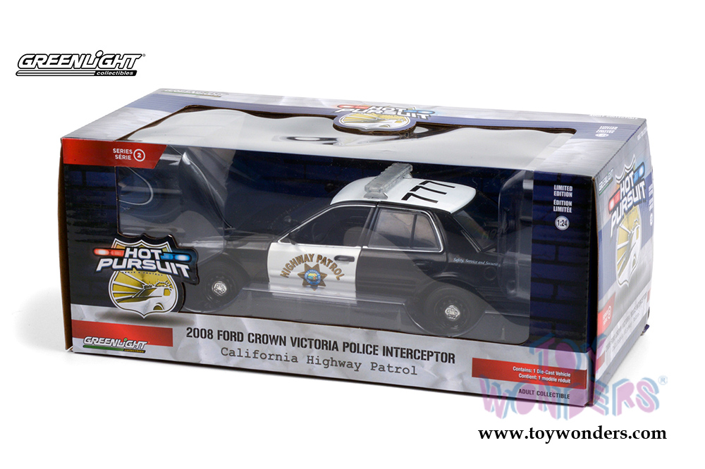 Greenlight - Ford Crown Victoria California Highway Patrol (CHP) Hot Pursuit Series 2 (2008, 1/24 scale diecast model car, White/Black) 85523
