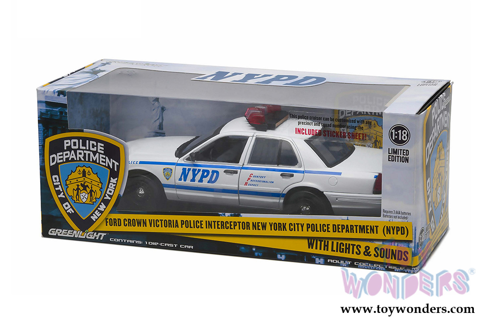 Greenlight - Ford Crown Victoria Police Interceptor NYPD (1/18 scale diecast model car, White/Blue) 12920