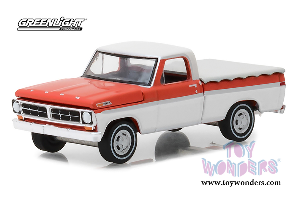 Greenlight - Ford F-100 Pickup Truck with Bed Cover (1971, 1/64 scale diecast model car, Orange/White) 29957/48