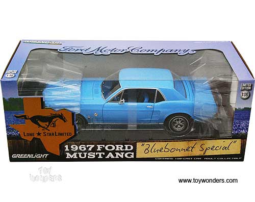 Greenlight - Ford Mustang Coupe "Lone Star Limited Edition" - Bluebonnet Special (1967, 1/18 scale diecast model car, Blue) 12893