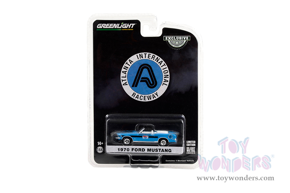 Greenlight - Ford Mustang Mach 1 428 Cobra Jet Convertible - Atlanta International Raceway Official Pace Car (1970, 1/64 scale diecast model car, Blue with Black stripes) 30363/48