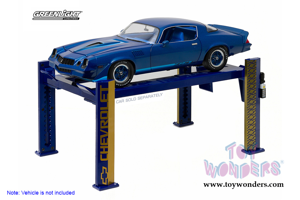 Greenlight - Four Post Lift Chevrolet Edition (1/18 scale diecast model accessory, Blue/Gold) 12918
