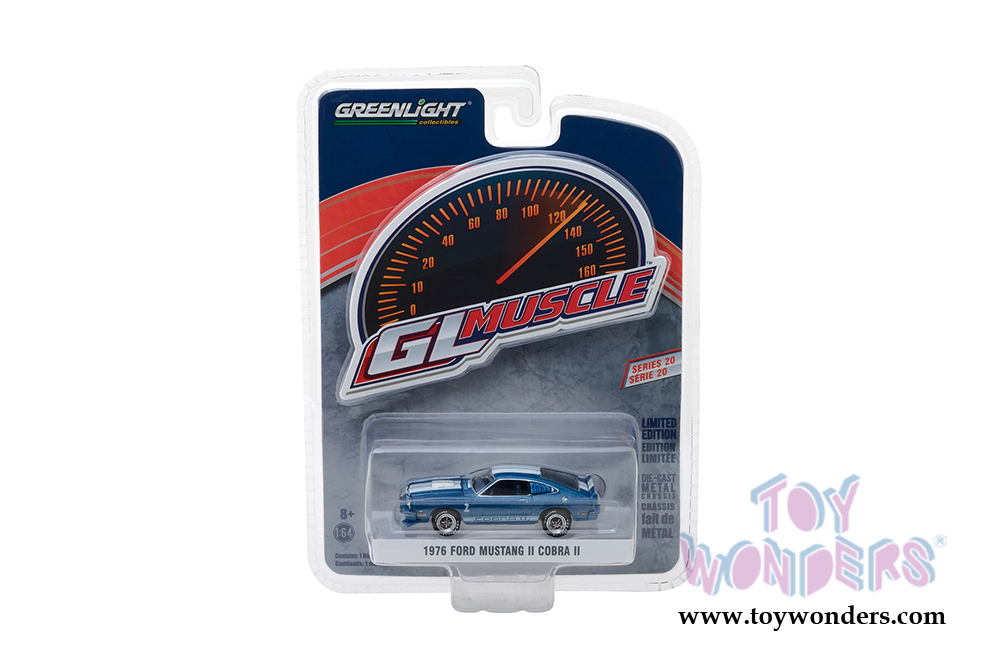 13210/48 Greenlight - GL Muscle Series 20 Assortment (six-piece set). 1:64 scale diecast collectible model. These cars are about 3" long diecast metal cars. Each car individually blister carded. Card size: 7.5" x 5.75". 6 pcs/inner. Manufactured by Greenlight. 13210/48 is in assorted colors.