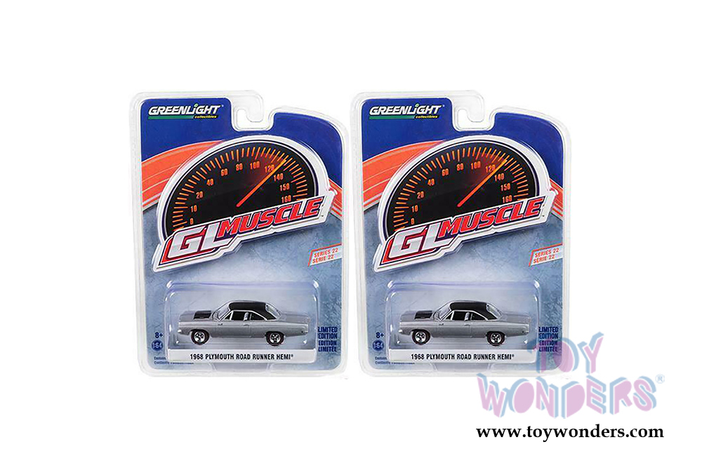 Greenlight - GL Muscle Series 22 | Plymouth Road Runner Hemi® Hardtop (1968, 1/64 scale diecast model car, Buffet Silver) 13250B/48