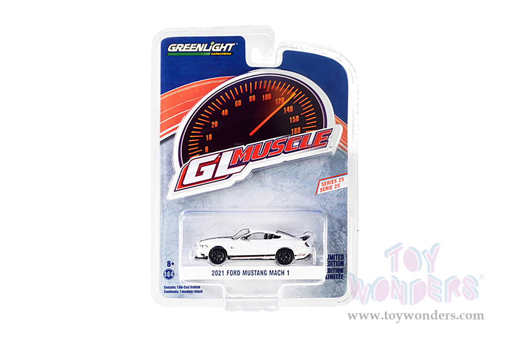 13300/48 Greenlight - GL Muscle Series 25 Assortment (six-piece set). 1:64 scale diecast collectible model. These cars are about 2.75" to 3" long diecast metal cars. Each car individually blister carded. Card size: 7.5" x 5.75". 6 pcs/inner. Manufactured by Greenlight. 13300/48 is in assorted colors.