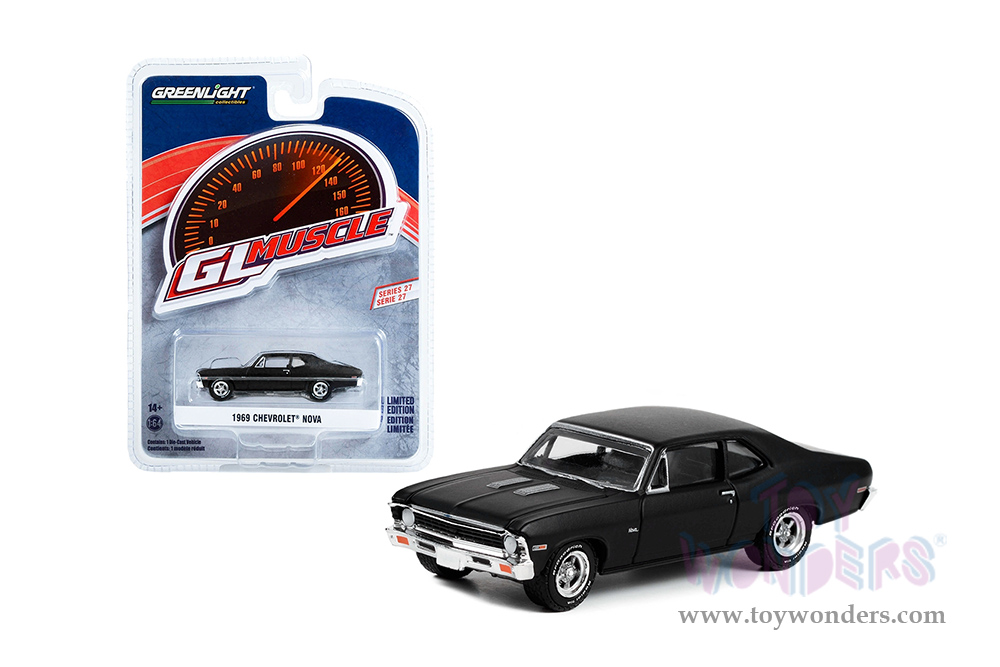 Greenlight - GL Muscle Series 27 | Chevrolet® Nova (1969, 1/64 scale diecast model car, Custom Matte Black) 13320B/48