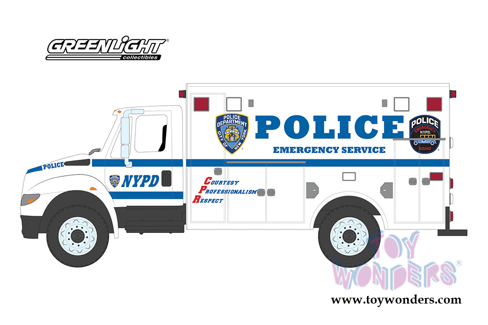 Greenlight - Heavy Duty Trucks Series 19 | International® Durastar® Emergency Service New York Police Department (NYPD) (2013, 1/64 scale diecast model car, White/Blue) 33190B/48