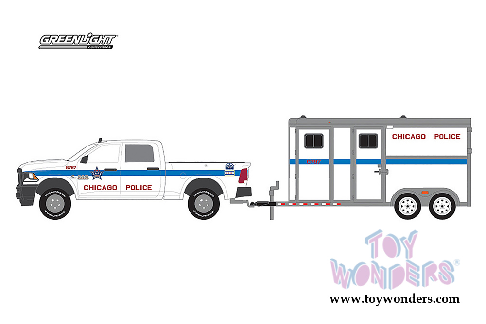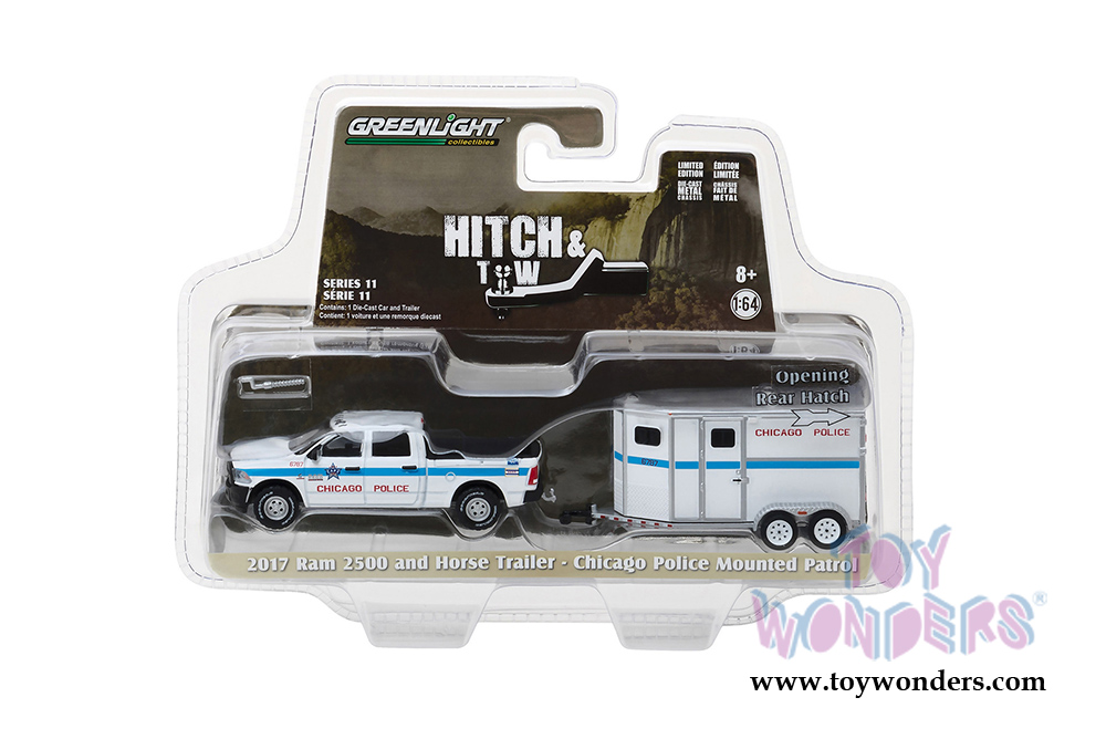 Greenlight - Hitch & Tow Series 11 | Dodge Ram 2500 and Horse Trailer Chicago Police Mounted Patrol (2017, 1/64 scale diecast model car, White/Blue) 32110D/48