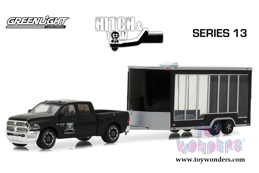 Greenlight - Hitch & Tow Series 13 | Ram 2500 and Glass Display Trailer Graveyard Carz (2016, 1/64 scale diecast model car, Black) 32130D/24
