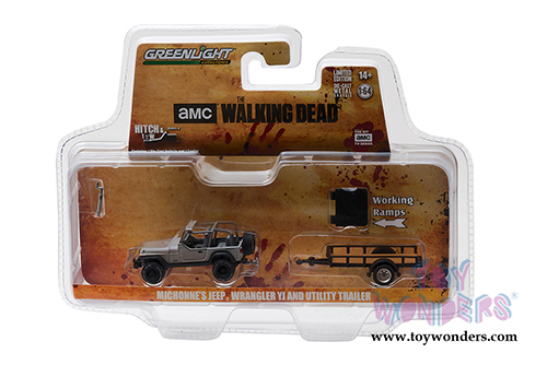 Greenlight - Hitch & Tow Series 8 | Michonne's Jeep Wrangler YJ and Utility Trailer "The Walking Dead" (1/64 scale diecast model car, Beige) 32080B