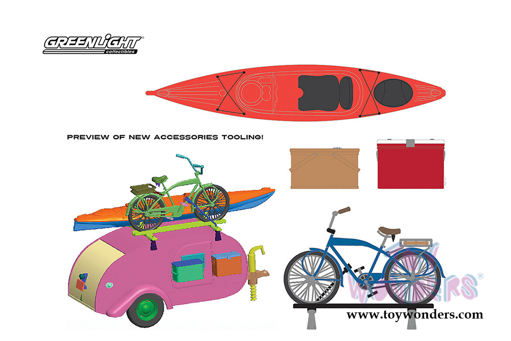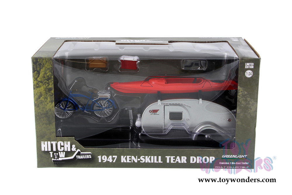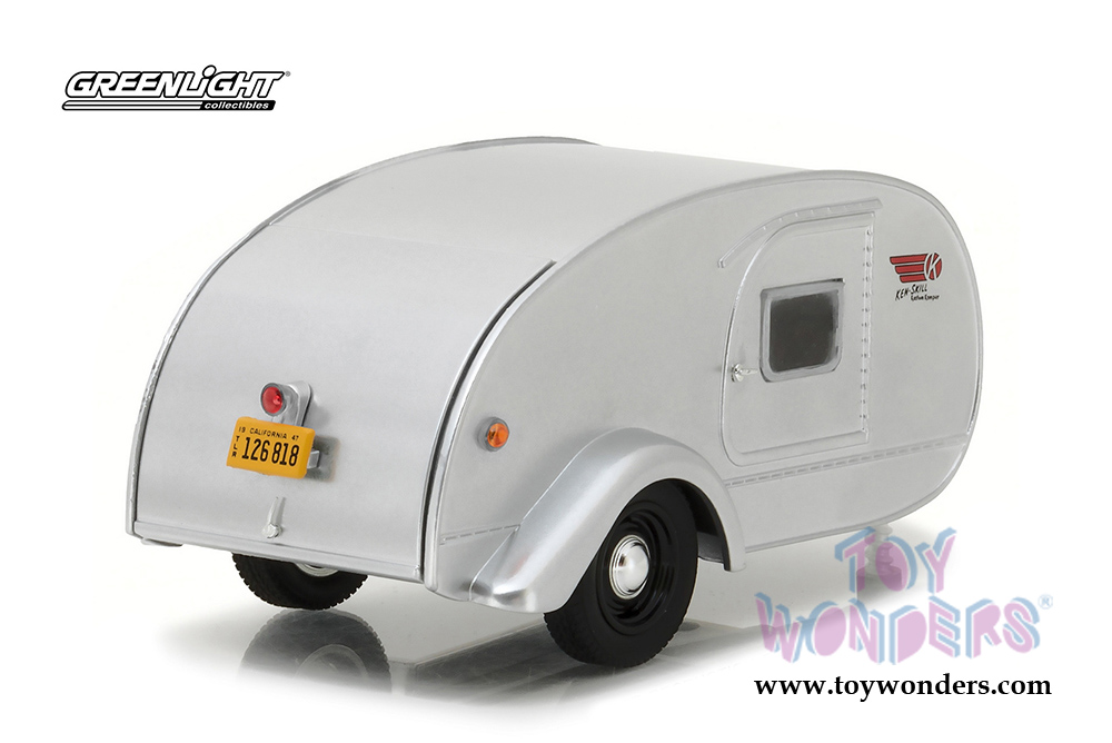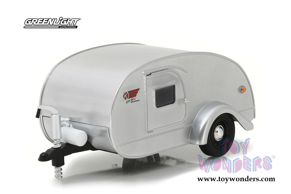 Greenlight - Hitch & Tow Trailers Series 2 | Ken Skill Tear Drop Trailer with Accessories (1947, 1/24 scale diecast model car, Silver) 18420A/12