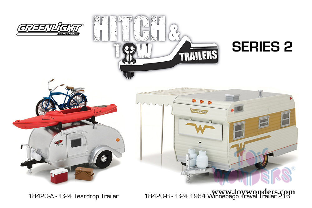 Greenlight - Hitch & Tow Trailers Series 2 | Winnebago 216 Trailer (1964, 1/24 scale diecast model car, White w/Gold) 18420B/12