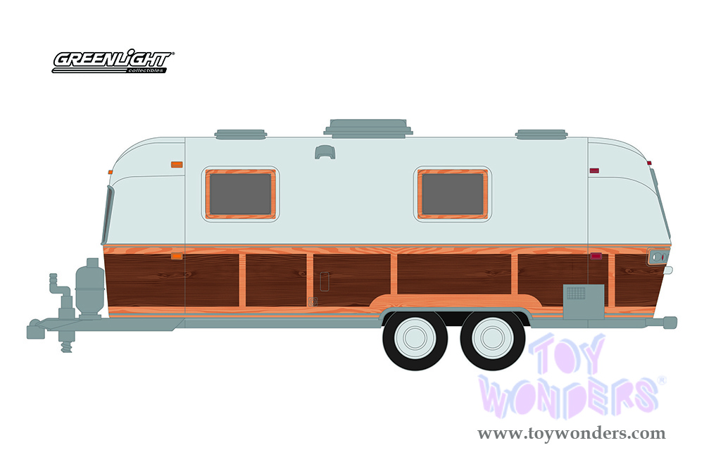 Greenlight - Hitched Homes Series 11 | Airstream Double-Axle Land Yacht Safari Custom Woody (1972, 1/64 scale diecast model car, Silver/Wood) 34110C/48