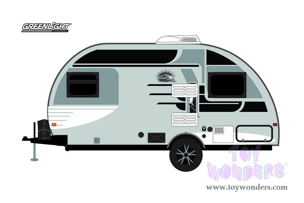 Greenlight - Hitched Homes Series 11 | Winnebago Winnie Drop Travel Trailer (2016, 1/64 scale diecast model car, Platinum/White) 34110D/48