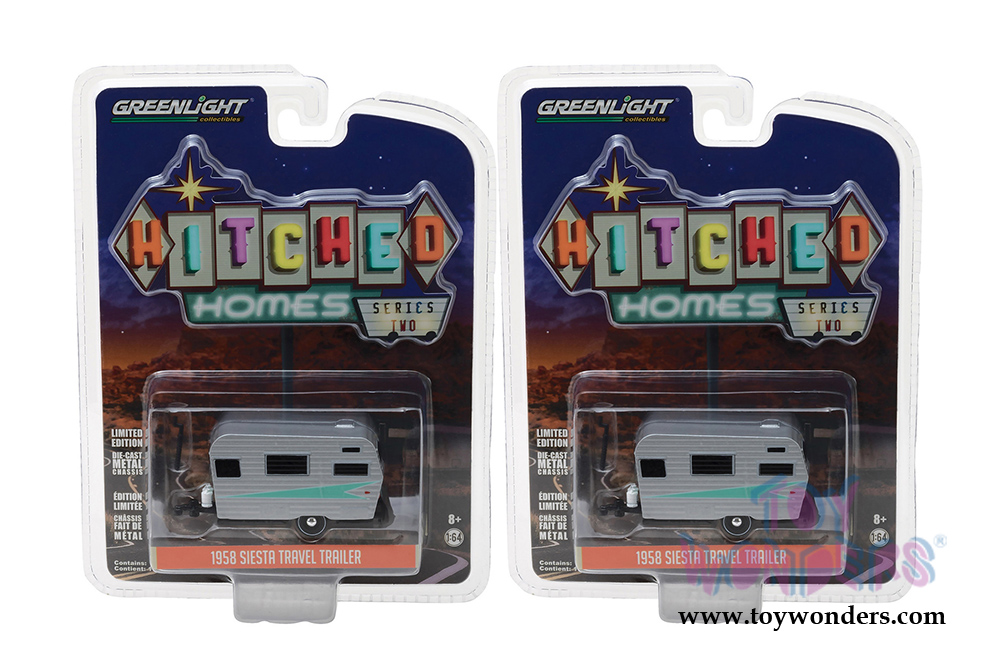Greenlight - Hitched Homes Series 2 | Siesta Travel Trailer (1958, 1/64 scale diecast model car, Silver) 34020A/48