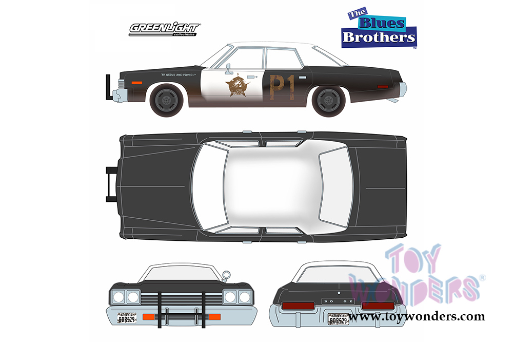Greenlight Hollywood - Dodge Monaco Bluesmobile "The Blues Brothers" Movie (1974, 1/24 scale diecast model car, Black/White) 84011