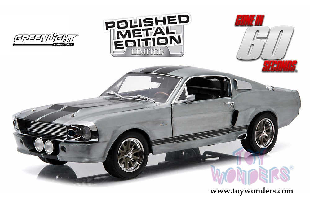 Greenlight Hollywood - Eleanor from "Gone in 60 Seconds" - Custom Ford Mustang Polished Metal Edition Hard Top (1967, 1/18 scale diecast model car, Metal w/ Black Stripes) 12959