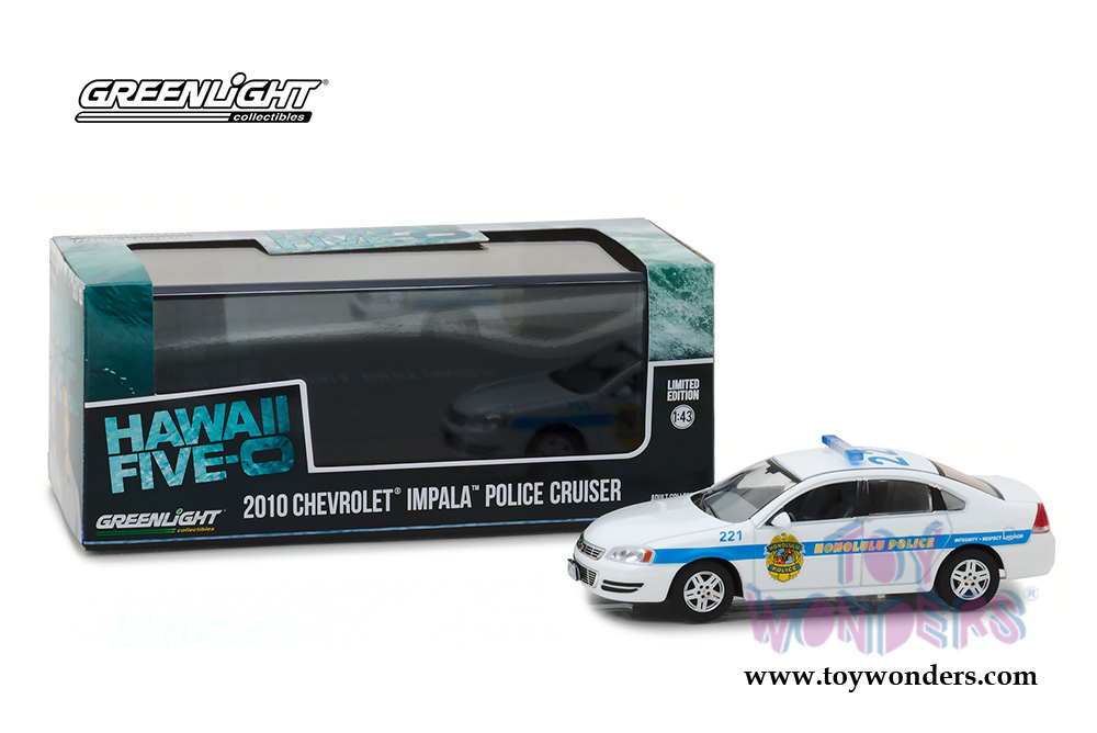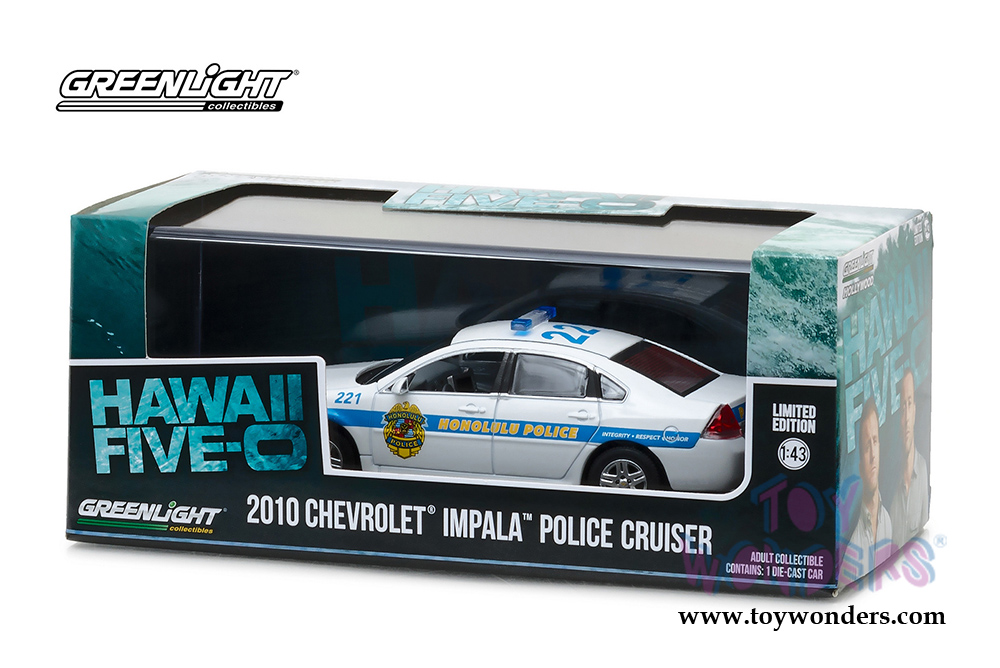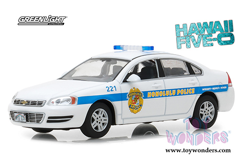 Greenlight Hollywood - Hawaii Five-0 Chevrolet Impala Police Cruiser - Honolulu Police (2010, 1/43 scale diecast model car, White/Blue) 86518