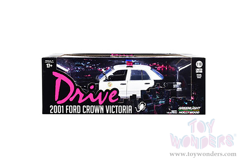 Greenlight Hollywood - Los Angeles Police Department (LAPD) "Drive" (2011) Movie - Ford Crown Victoria Police Interceptor (2001, 1/18 scale diecast model car, Black/White) 13610