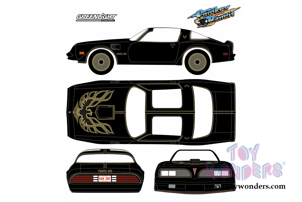 Greenlight Hollywood - Pontiac Firebird Trans Am - Smokey and the Bandit movie T Top (1977, 1/24 scale diecast model car, Black/Gold) 84013