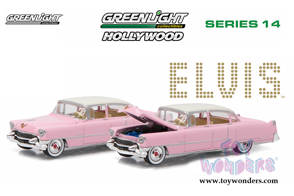44740C/48 Greenlight - Hollywood Series 14 | "Elvis' 1955 Cadillac® Fleetwood Series 60 "Pink Cadillac". This 1/64 scale Cadillac is 3.5" long diecast model car. GreenLight has put the love of the silver screen into something slightly smaller with 1:64th scale replicas. GreenLight Hollywood takes iconic film and television vehicles from both the past and present and brings them to life with four-wheeled diecast replicas. 1:64 scale diecast collectible model. Each car individually blister carded. Card size: 5.75" x 7.75". Manufactured by Greenlight. Item 44740C/48 is in PINK color.