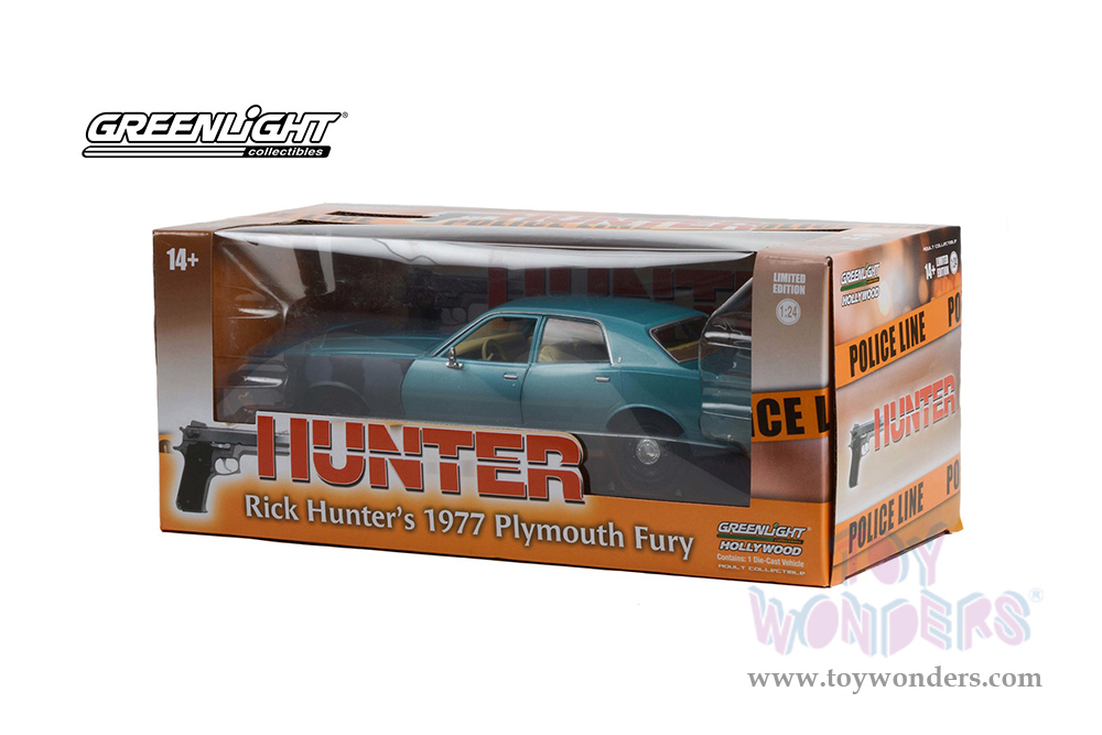 Greenlight Hollywood Series 15 | Plymouth Fury Unrestored (Sergeant Rick Hunter's) "Hunter" (1977, 1/24 scale diecast model car, Turquoise) 84152