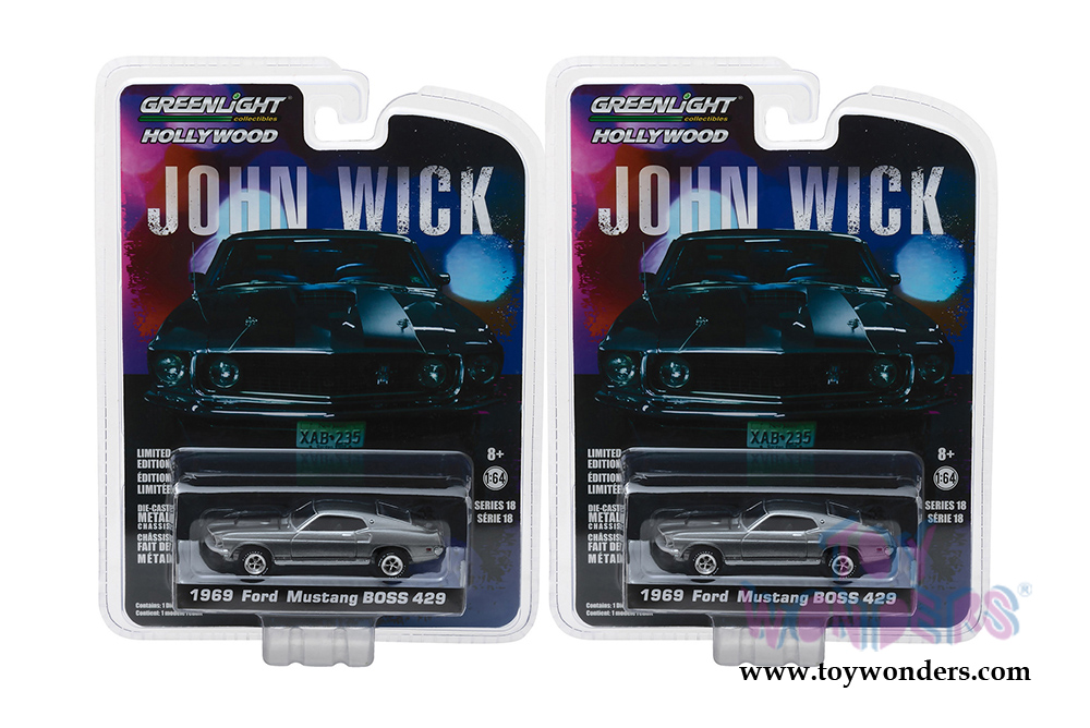 Greenlight - Hollywood Series 18 | Ford Mustang BOSS 429 John Wick Movie (1969, 1/64 scale diecast model car, Gray) 44780E/48