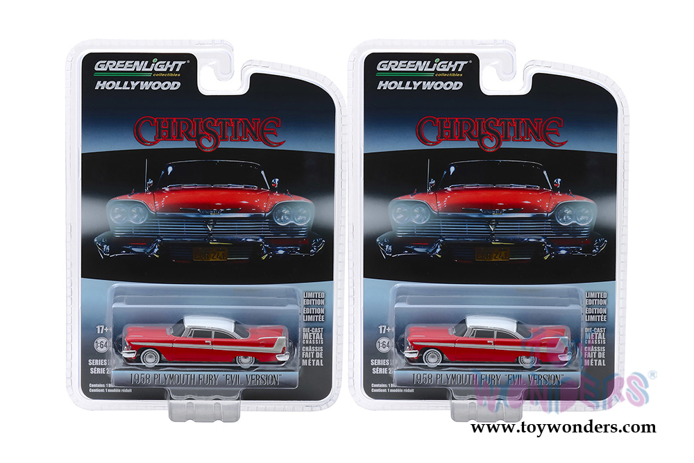 Greenlight - Hollywood Series 24 | Plymouth Fury - Evil Version with Blacked Out Windows - Christine (1958, 1/64 scale diecast model car, Red/White) 44840B/48