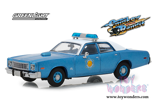 Greenlight Hollywood - Smokey and The Bandit Plymouth Fury Arkansas State Police (1975, 1/43 scale diecast model car, Blue/White) 86536