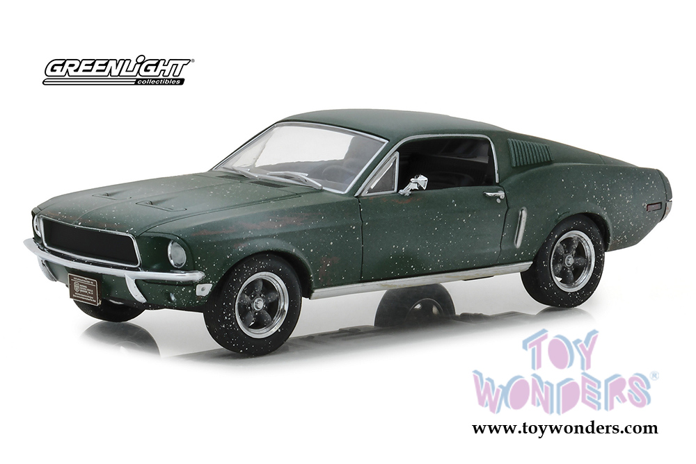 84043 Greenlight Hollywood - Steve McQueen Unrestored 1968 Ford Mustang GT 2018 Detroit Auto Show. 1:24 scale diecast collectible model car. This Ford Mustang GT is a 7.5"L x 3"W x 2.5"H diecast metal car. Detailed interior, exterior, opening doors. This 1968 Ford Mustang GT is manufactured by Greenlight. 84043 is in GREEN color. Individually packed in a window box. Box size is 9.5"L x 4.5"W x 4.25"H.