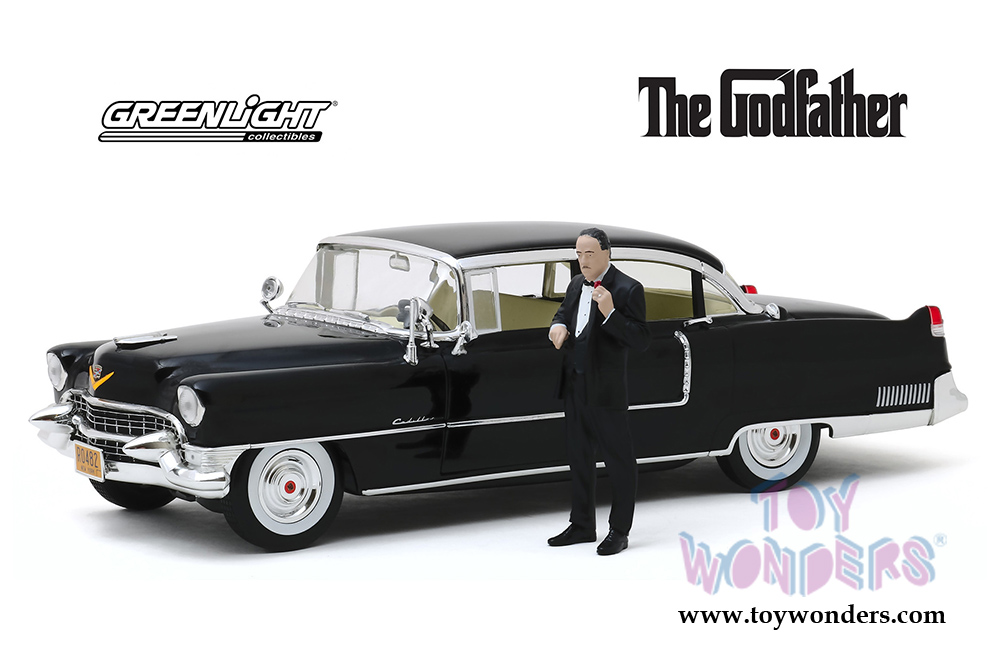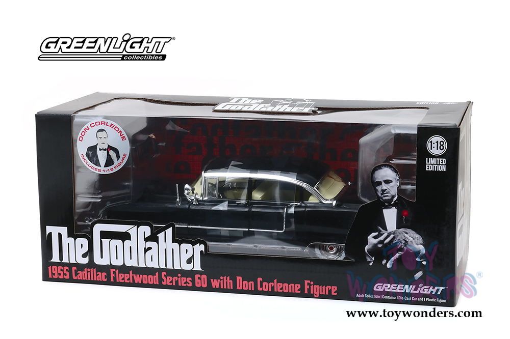 Greenlight Hollywood - The Godfather Cadillac Fleetwood Series 60 with Don Corleone Figure (1955, 1/18 scale diecast model car, Black) 13531