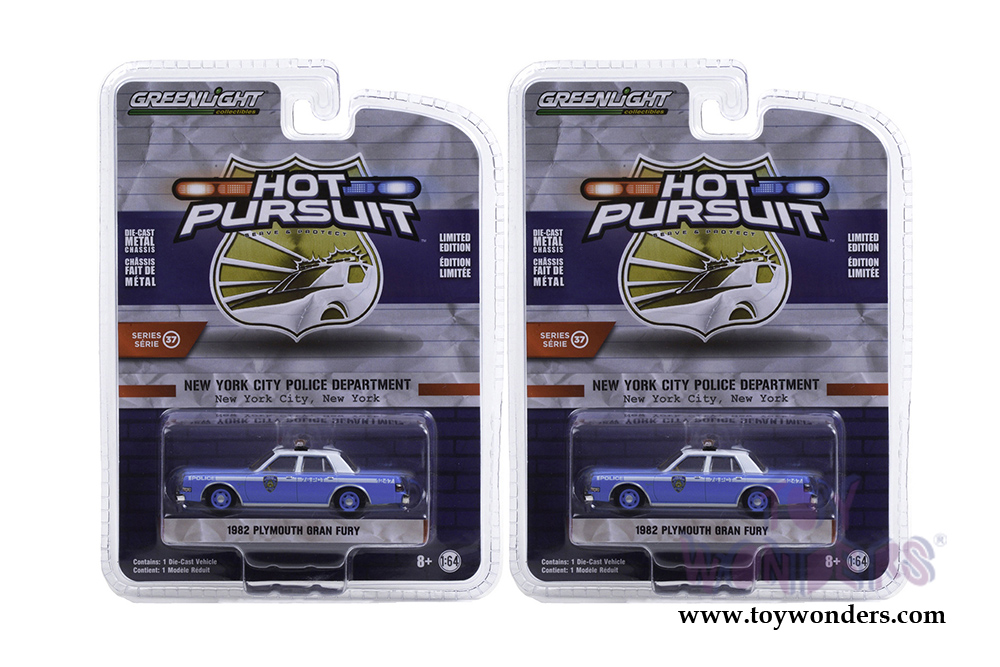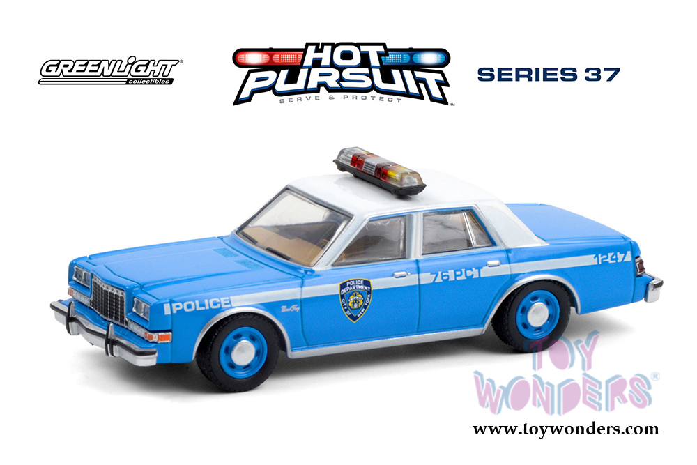 Greenlight - Hot Pursuit Series 37 | Plymouth Gran Fury - New York City Police Department (1982, 1/64 scale diecast model car, Blue/White) 42950B/48