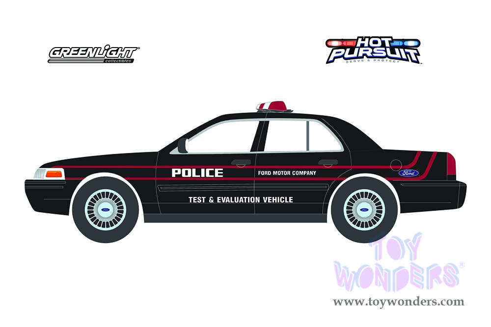 Greenlight - Hot Pursuit Series 39 | Ford Crown Victoria Police Interceptor Police Prep Package "Test & Evaluation Vehicle" Dearborn (Michigan) (2001, 1/64 scale diecast model car, Black) 42970D/48
