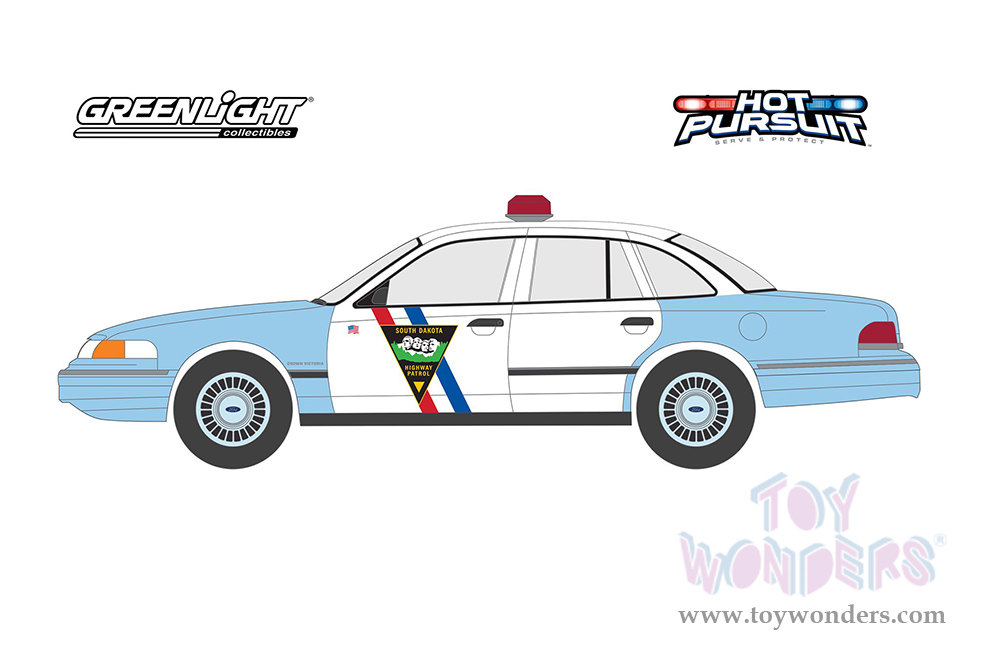 Greenlight - Hot Pursuit Series 42 | Ford Crown Victoria Police Interceptor - South Dakota Highway Patrol (1992, 1/64 scale diecast model car, white and light blue) 43000B/48