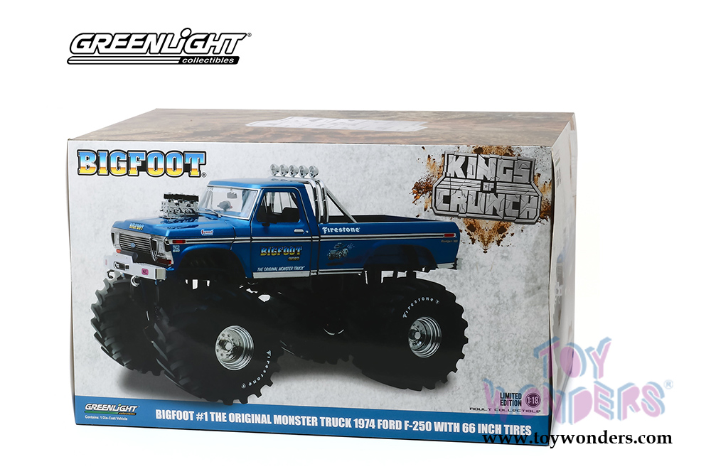 Greenlight - Kings of Crunch Ford F-250 Monster Truck (with 66-inch Tires) - BIGFOOT® #1 The Original Monster Truck (1974, 1/18 scale diecast model car, Blue) 13541